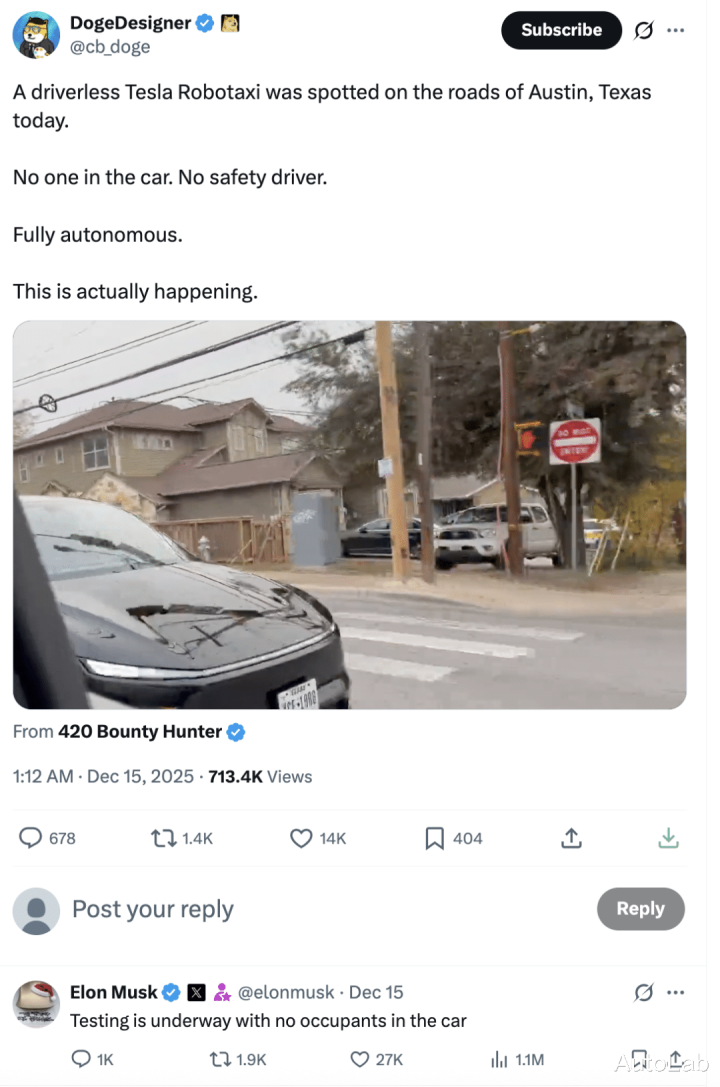 然后马斯克迅速出面证实,特斯拉的确正在进行无人驾驶测试。