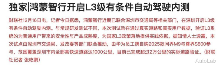 到了今天一早,华为在深圳开始L3道路测试的新闻又不胫而走。